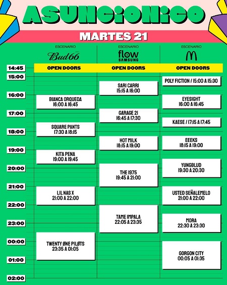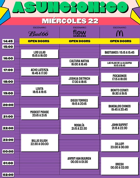 El Asunciónico arrancará a las 15:00 en el Parque Olímpico, de acuerdo a la agenda oficial del festival más importante del país.