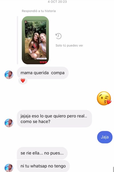 Se refería evidentemente a Eduardo Dios Kostianovsky, conocido como Pipo Dios, considerando que compartió una captura de un intercambio en Instagram, donde el hombre le hace cierta sugerencia (ver abajo). “No es acoso, soy mentirosa, exagerada y problemática”, ironizó.
