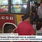 »Parece que les indigna mucho más que contemos la verdad, que como hoy los transportistas públicos no están dando un servicio acorde a la gente. Solamente íbamos a mostrar este cartel», expresa un joven indignado. #TelefuturoPy #MeridianoPy pic.twitter.com/mwsaY1QRVY