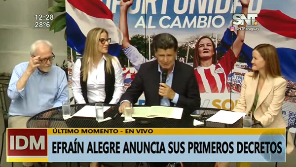 Este lunes, en conferencia de prensa el candidato presidencial por la Concertación, Efraín Alegre, anunció los primeros decretos que serán promulgados en caso de ganar las próximas elecciones generales.