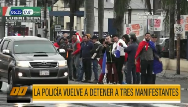La Policía Nacional detuvo nuevamente este domingo a tres manifestantes. Según los intervinientes, el grupo mismo denunció que estas personas estaban en el sitio en estado etílico.