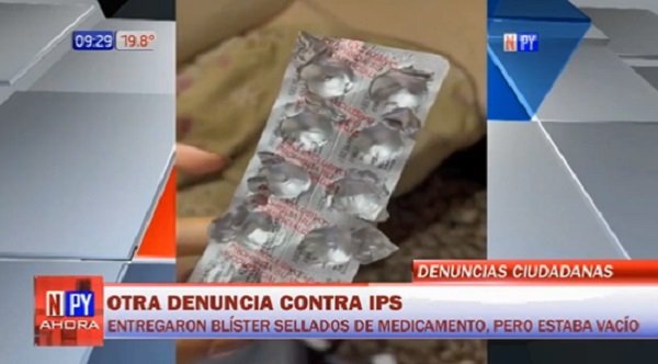La hija de un asegurado del Instituto de Previsión Social (IPS) denunció que su padre retiró medicamentos de la farmacia del centro hospitalario, sin embargo, el envoltorio se encontraba vacío.
