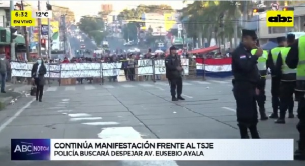 El subcomandante de la Policía Nacional, Baldomero Jorgge Benítez, anunció que este martes buscarán despejar la avenida Eusebio Ayala y Choferes del Chaco de Asunción, en zona del Tribunal Superior de Justicia Electoral (TSJE), donde manifestantes se instalaron para protestar por un supuesto fraude en las elecciones generales.