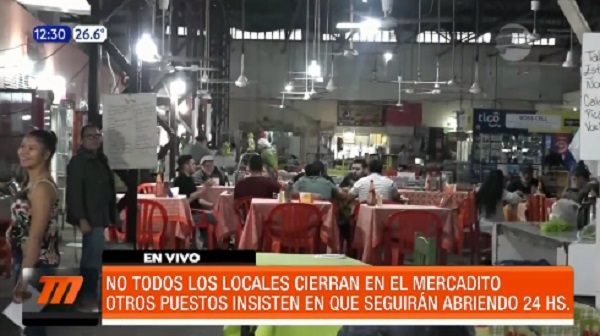 No todos los locales cierran en el Mercadito Nº1. Otros puestos insisten en que seguirán abriendo 24 horas.