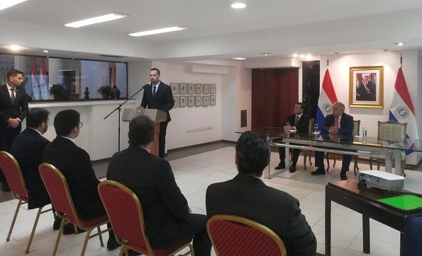 El anuncio de la alianza contó con la presencia del viceministro de Administración y Asuntos Técnicos del Ministerio de Relaciones Exteriores, Juan Andrés Cáceres, así como también del gerente general de Bancard, Aníbal Corina.