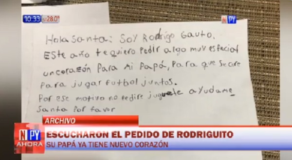 Su hijo, Rodrigo, se había viralizado en redes sociales, el año pasado, tras escribir una carta a Papá Noel, en la cual, a diferencia de los niños de su edad no pedía juguetes, sino que pidiendo un corazón para su padre.