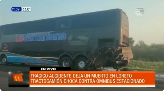 Trágico accidente deja un muerto en Loreto. Tractocamión choca contra ómnibus estacionado.