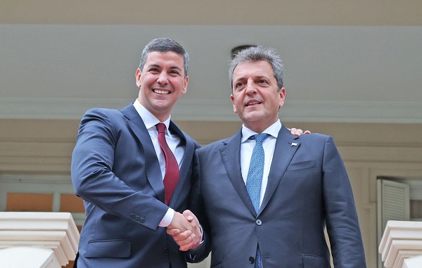 El presidente @SantiPenap recibió al ministro de Economía de Argentina, Sergio Massa, con quien definió agendas de trabajo que incluyen la construcción de puentes internacionales, el pago de deudas de la EBY y el impulso de la hidrovía Paraguay-Paraná.