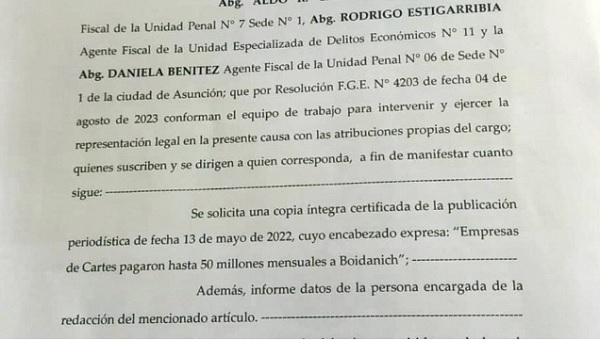 Los diarios ABC Color y Última Hora recibieron notificaciones de los fiscales Aldo Cantero, Daniela Benítez y Rodrigo Estigarribia.