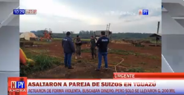 Una pareja de suizos experimentó una aterradora experiencia la noche del jueves, cuando tres individuos encapuchados y armados ingresaron a su propiedad en el distrito de Yguazú, departamento del Alto Paraná.