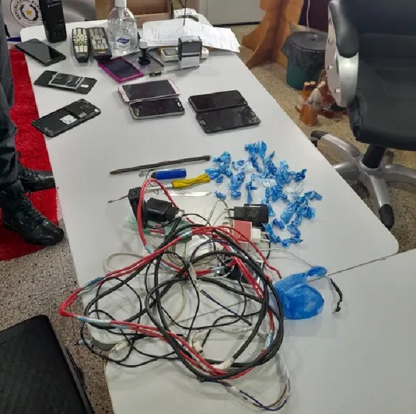 En el operativo se incautaron 19,1 gramos de cocaína, distribuidos en 44 moños envueltos en bolsitas de polietileno. Además, se confiscaron seis aparatos celulares de diferentes marcas y modelos con sus respectivos cargadores, un cable alargue de dos metros y cuatro armas blancas tipo cuchillo.