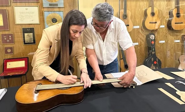 La guitarra en cuestión no es una cualquiera; perteneció a Mangoré, el célebre guitarrista y compositor paraguayo, y resguarda en su madera los acordes de una época dorada.