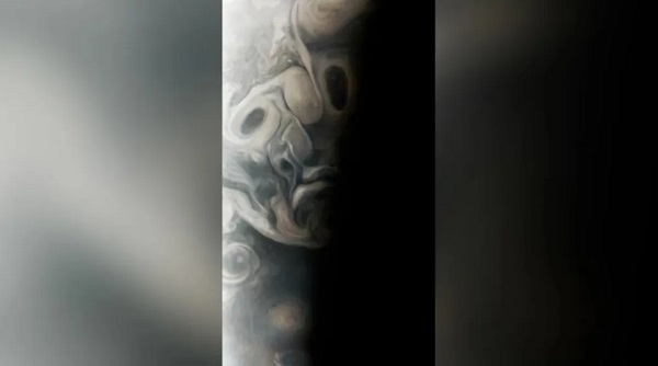 En un evento que científicos llaman pareidolia – el fenómeno psicológico donde percibimos patrones reconocibles, como rostros, en imágenes aleatorias – la JunoCam de la misión Juno capturó remolinos de nubes y tormentas que forman un inquietante rostro en Júpiter.