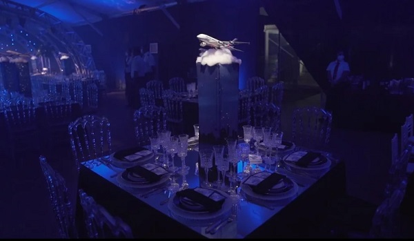 Los allegados de Marset recibieron invitaciones que simulaban ser tickets de avión de la aerolínea Emirates Marset, con el título “Cumpleaños del Comandante Sebastián Marset”. Al llegar al lugar, los invitados se encontraron con una escena digna de un aeropuerto, con una avioneta estacionada en la entrada del salón temático.