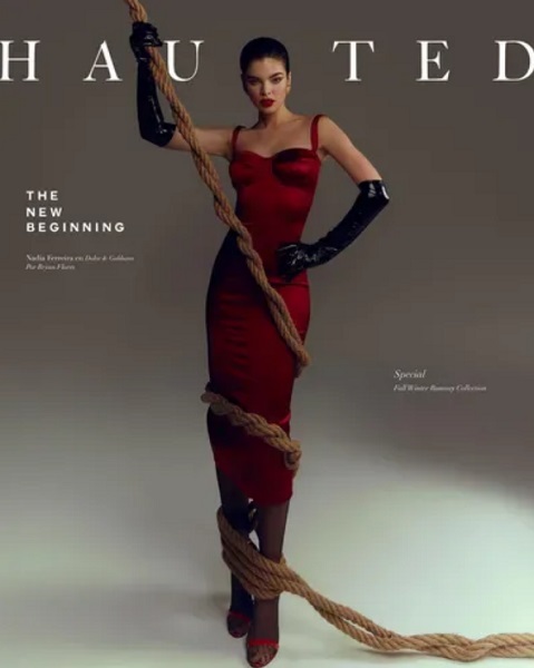 En las páginas de Haunted Magazine, Nadia no solo luce la moda de Dolce & Gabbana, también representa el legado de la marca. La revista subraya que en este especial DGFW23, Nadia personifica la fusión entre seducción y elegancia que ha caracterizado a la marca desde sus inicios.