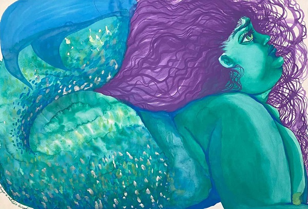 Cabrera también destaca la influencia de Elvira Barudi, madre del artista, en la formación de Cataldo. Fue ella quien le enseñó los primeros trazos y bajo su tutela, Hugo inició un largo viaje que lo llevó desde la animación y el cine hasta regresar al dibujo y la pintura. En esta exposición, se aprecia a un joven Cataldo, absorto en los cuerpos diferentes, con una mirada llena de afecto y silencio. La sirenita de Andersen, entre otros cuentos, sobrevuela esta época y forma parte de la cohorte de las hijas del aire.