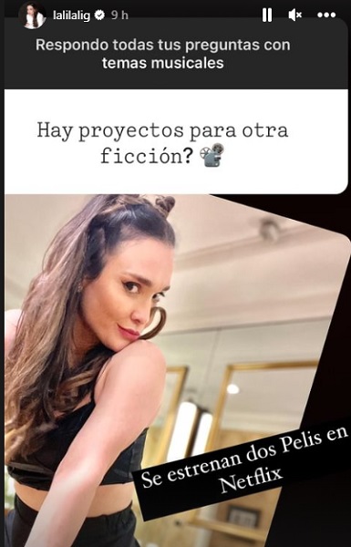 La actriz inició un juego con sus seguidores en Instagram, prometiendo responder todas las preguntas con temas musicales. Uno de los usuarios aprovechó para preguntarle: “¿Hay proyectos para otra ficción?”. Fue ahí cuando Lali reveló: “Se estrenan dos pelis en Netflix”.