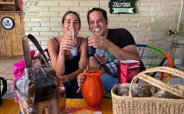 La conductora no sólo aprendió sobre las propiedades del pohã ñana, sino que también tuvo la oportunidad de probar el tereré, sumergiéndose así en una de las tradiciones más queridas de Paraguay.