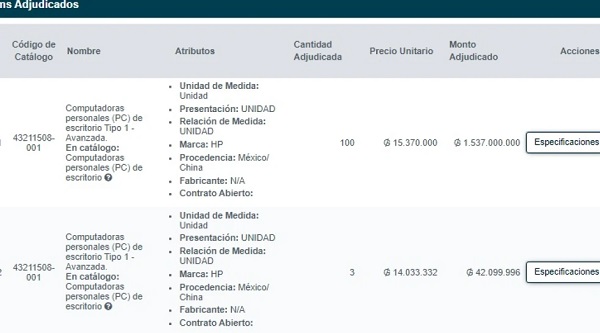 El contrato fue adjudicado a Emprendimientos del Sur, la empresa que presentó la oferta más baja, por un total de más de 1.500 millones de guaraníes, según los registros de la Dirección de Contrataciones Públicas. El pedido consta de 100 computadoras con configuraciones avanzadas que se destinarán a las oficinas de los senadores, comisiones y dependencias administrativas.