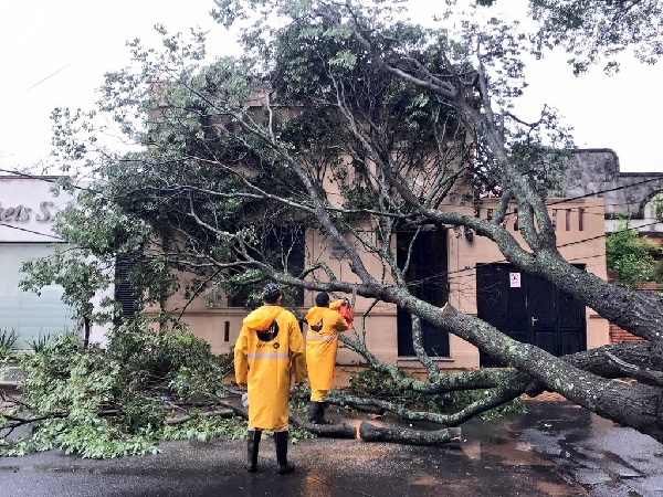 El temporal echó varios árboles en la capital del país. Foto: Municipalidad de Asunción.