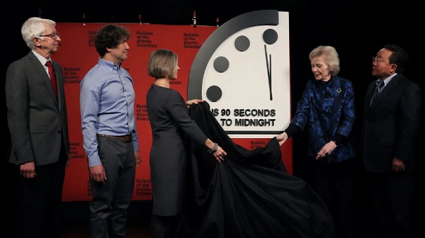 | AHORA: El Boletín de Científicos Atómicos de EEUU, señala que el reloj del fin del mundo falta 90 segundos para la medianoche.