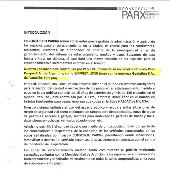 Según pudo confirmar la redacción de RDN, la empresa israelí Parx Ltd., que según documentos oficiales poseía la mayoría accionaria de Onix Parque S.A. de Argentina, ya no forma parte del consorcio Parxin que implementó el estacionamiento tarifado en Asunción. Esto contradice lo informado inicialmente por el consorcio a la comuna capitalina.