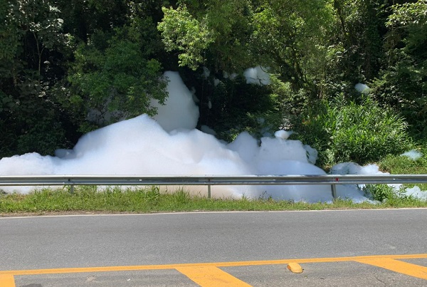 El derrame de ácido sulfónico ha generado una gran cantidad de espuma en la carretera, lo que dificulta el tránsito vehicular. Además, el viento ha contribuido a dispersar estas espumas a lo largo de la carretera, lo que agrava la situación.