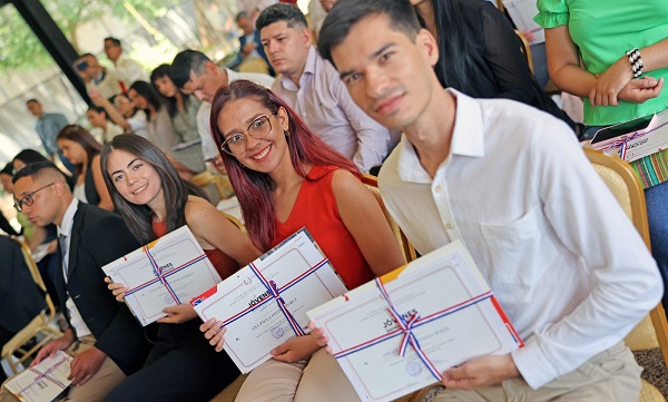 El presidente Santiago Peña procedió a la entrega de apoyo económico a 65 jóvenes emprendedores de varios departamentos, quienes resultaron adjudicados en el concurso Capital Semilla tras presentar ideas de negocios innovadoras y sostenibles.