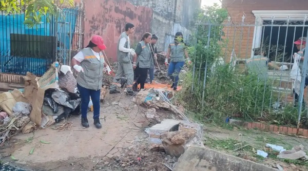 La vivienda, situada en la intersección de las calles Héctor Velázquez y Tobatí, fue un punto de preocupación constante tanto para los vecinos como para la autoridad municipal, debido al volumen de desechos acumulados y la vegetación descontrolada que sirven de hábitat ideal para la proliferación del vector del dengue.