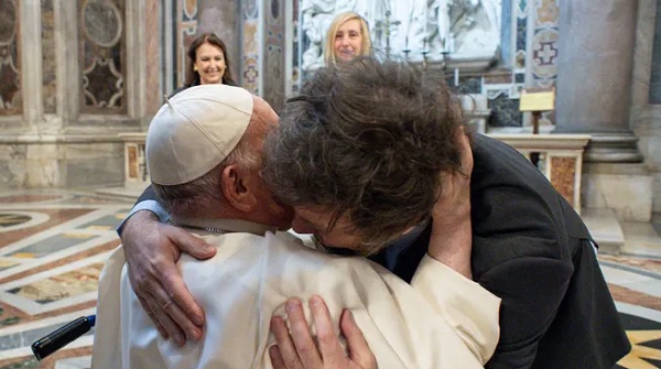 El presidente argentino, Javier Milei, y el Papa Francisco se saludaron este domingo con un abrazo en el Vaticano, en un encuentro inesperado que marca un giro en la relación entre ambos.