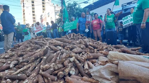 En el marco de la protesta, los campesinos trajeron 6.000 kilos de mandioca para regalar a la población como símbolo de la calidad de sus productos y para denunciar la falta de oportunidades que enfrentan.