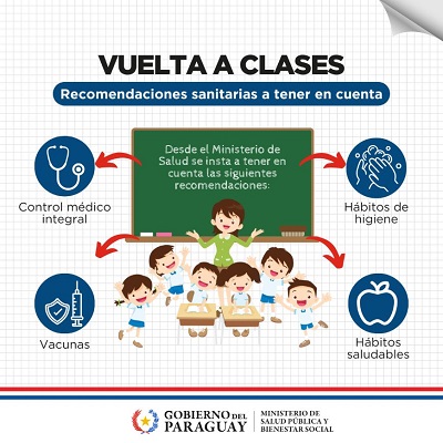 A pocos días del inicio del ciclo escolar 2024, el Ministerio de Salud Pública y Bienestar Social (MSPyBS) insta a la comunidad educativa a implementar medidas para un regreso a clases seguro y saludable.