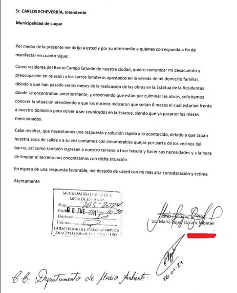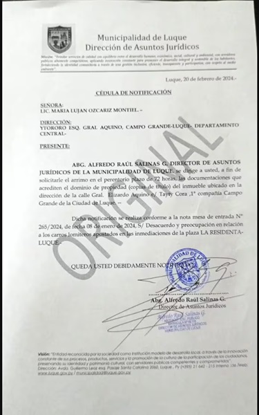 El trasfondo parece ser el conflicto que Luque mantiene desde hace años con lomiteros instalados en veredas y calles. La comuna habría identificado este terreno para reubicarlos, pero la familia se niega por considerarlo suyo.