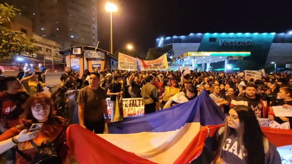 Una multitudinaria movilización, que congregó a más de 3.000 estudiantes, se realizó anoche en Ciudad del Este, donde participaron alumnos de todas las filiales de la Universidad Nacional del Este (UNE). Los jóvenes marcharon hasta la zona primaria del Puente de la Amistad, cerrando intermitentemente la vía de acceso al país y coreando consignas como “El que no salta, corrupto es”.