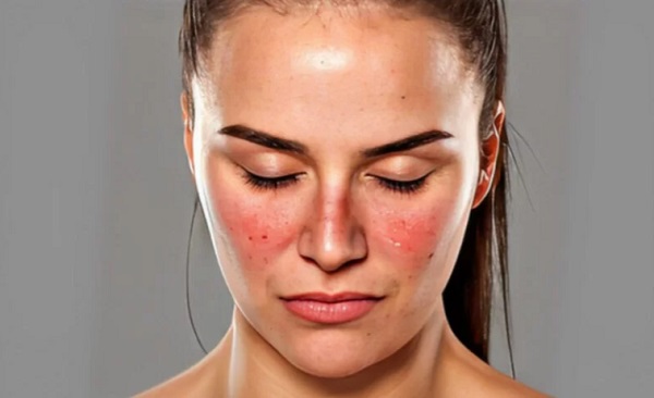 Los síntomas más característicos del lupus incluyen lesiones en la piel con eritemas en el rostro, sensibilidad a la exposición solar, caída de pelo, fiebre, hinchazón articular, inflamación en el área de los ojos y en las piernas. La enfermedad puede presentarse desde formas leves hasta graves.