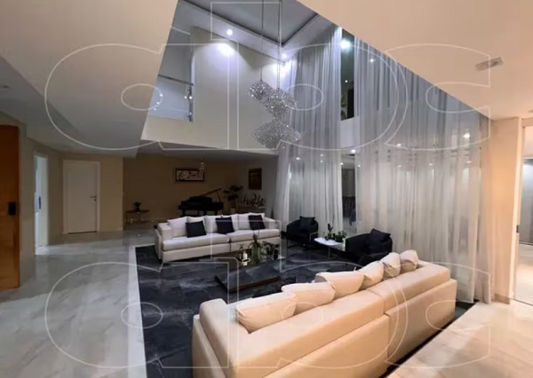 El interior de la mansión no se queda atrás en cuanto a lujo se refiere. Cuenta con al menos tres salas, cada una con sillones de varios cuerpos y chaise longues, aire acondicionado central, cielo raso en todos los ambientes, una baranda de vidrio templado y acero inoxidable, y una pared de escalera espejada que brinda una sensación de amplitud. Además, se destacan las arañas de diseño moderno y múltiples caireles que cuelgan desde los plafones y el cielo raso.