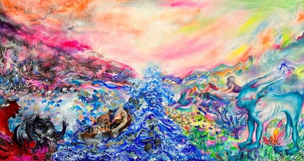 En su texto curatorial, Escobar destaca que la exposición explora la integración y superposición de diversas técnicas y materiales, como pintura, impresiones 3D, escultura y video. Este enfoque transmedial de Boesmi borra los límites entre los distintos medios, creando espacios híbridos y en constante mutación. La obra del artista se caracteriza por un dinamismo incesante y la capacidad de vincular elementos opuestos, combinando lo artesanal con lo tecnológico.