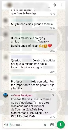 En el contenido del mensaje, Rodríguez Kennedy agradeció el apoyo recibido y aseguró que el dictamen de la Contraloría no era vinculante. Añadió que, hacía 10 días, ya habían acudido al Tribunal de Cuentas Segunda Sala y que, en ese momento, se estaba planteando un incidente de prejudicialidad. Estas declaraciones, aparentemente inofensivas, fueron percibidas por algunos como un intento de obstaculizar la entrega de informes requeridos por diferentes instituciones.