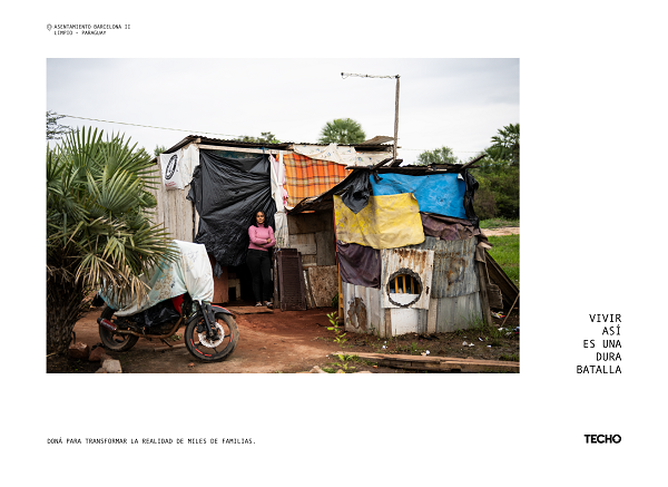 TECHO Paraguay, con 16 años de trayectoria en el país, ha construido 8.870 viviendas de emergencia en más de 300 comunidades, movilizando a más de 115.000 voluntarios. Su labor se concentra en los departamentos de Central, Caaguazú, Itapúa y Alto Paraná, ejecutando programas de desarrollo comunitario y construcción de viviendas en conjunto con los pobladores de asentamientos.
