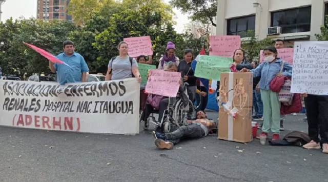 Un grupo de pacientes renales del Hospital Nacional de Itauguá se manifestó este jueves frente al Ministerio de Salud Pública, exigiendo la urgente reparación y reemplazo de las máquinas de hemodiálisis. Los manifestantes denuncian que el mal funcionamiento de estos equipos está poniendo en riesgo sus vidas y deteriorando su calidad de vida.