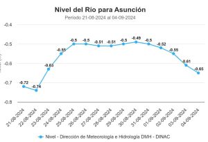 El río Paraguay continúa en descenso, registrando una caída de 9 cm entre el lunes y ayer, lo que sitúa su nivel en -61 cm en la capital. Esta situación agrava las preocupaciones sobre el impacto en el transporte fluvial y en los costos de productos para el consumidor final. Según expertos, el estiaje se prolongará por al menos 45 días más.