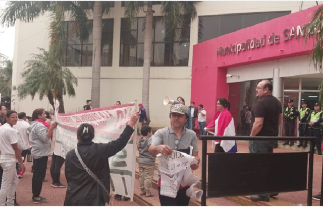 Manifestación frente a la municipalidad de San Lorenzo contra intento de despojo de terreno a bomberos voluntarios