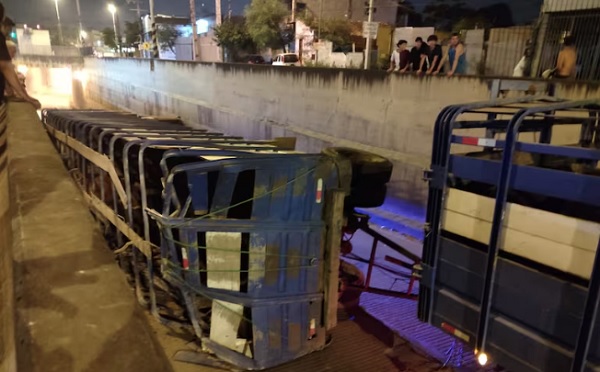 En la madrugada de este martes, un camión que transportaba ganado volcó en el túnel Semidei, ubicado en la salida desde la Transchaco hacia Ñu Guasu. El incidente ocurrió alrededor de las 3:00 a.m. cuando el conductor, identificado como Darío Estefano Mineur Esteche, de 27 años, perdió el control del vehículo tras intentar esquivar una motocicleta que cruzaba la vía. El impacto contra la pared del túnel provocó que parte del acoplado volcara, generando serios inconvenientes en el tránsito.