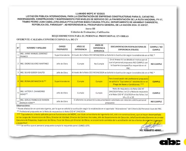 La adjudicación de uno de los lotes de la Ruta de la Soberanía a la empresa mexicana Calzada Construcciones SA por parte del Ministerio de Obras Públicas y Comunicaciones (MOPC) ha desatado sospechas de tráfico de influencias en Paraguay. La empresa, contratada para ejecutar el lote 3 de la obra por G. 384.595 millones (equivalente a USD 50,6 millones), tiene como personal clave al Ing. Reinaldo Macchi, cercano al senador colorado cartista Natalicio Chase.