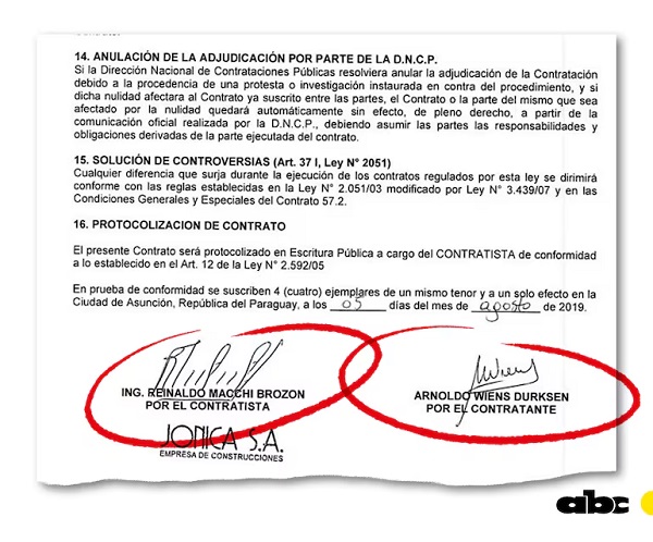 La adjudicación a Calzada Construcciones SA se realizó pese a que la empresa fue sancionada en Perú por presentar documentos falsos e información inexacta en una contratación. A pesar de las múltiples impugnaciones presentadas contra esta adjudicación, la Dirección Nacional de Contrataciones Públicas (DNCP) rechazó todas las objeciones, beneficiando a la empresa extranjera.