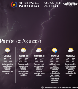 Hora: 06:45 h. pic.twitter.com/eyGQrUXMRb— Dirección de Meteorología e Hidrología – DMH (@DMH_paraguay) September 23, 2024