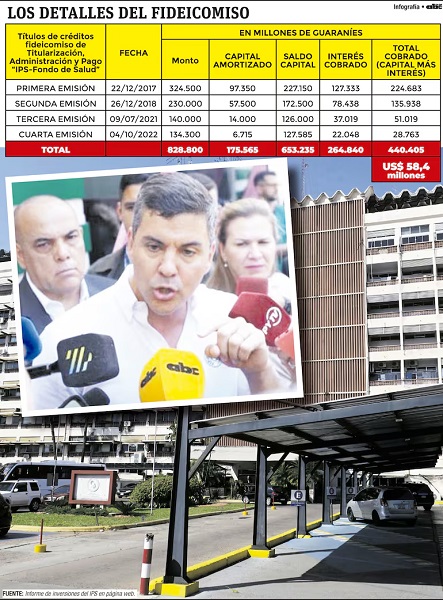 Los registros oficiales del Instituto de Previsión Social (IPS) han revelado que el fondo de Jubilaciones ha logrado recuperar más de G. 440.405 millones (aproximadamente USD 58,4 millones) a través del contrato de fideicomiso establecido en 2017. Esta cifra representa más del 50% de los títulos originalmente emitidos por el fondo de Salud, que ascendían a G. 828.800 millones (USD 110 millones).