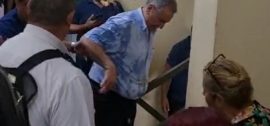 Venancio Díaz Escobar, presidente de la Caja Municipal, fue escrachado en Lambaré por manifestantes que exigen su salida del cargo.