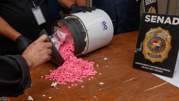 En un operativo de rutina realizado en el Aeropuerto Internacional Silvio Pettirossi, agentes de la Secretaría Nacional Antidrogas (Senad) descubrieron un cargamento de 7.872 dosis de éxtasis ocultas en un termocalefón. La encomienda había llegado desde Alemania y tenía como destino final Ciudad del Este, principal punto de entrada para mercados ilícitos en la región de la triple frontera.
