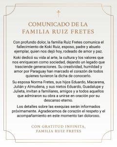 Este viernes, 20 de diciembre, el arte paraguayo amaneció de luto con el fallecimiento de Delfín Roque Ruiz Pérez, conocido como Koki Ruiz, a los 67 años.